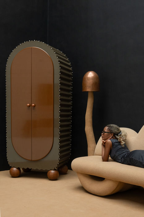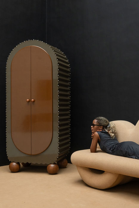 Crafted from discarded corrugated steel, this collaborative piece with House of Berserk and The Sacred Spiral combines bold, fluid curves with ornamental metal spheres that serve as both structure and art. Inside, diffused lighting adds warmth, while customizable interiors make it truly personal. More than furniture, it is a presence reminding us that within life’s tangles there is pattern, within chaos there is peace, and that beauty is found not in control but in release.